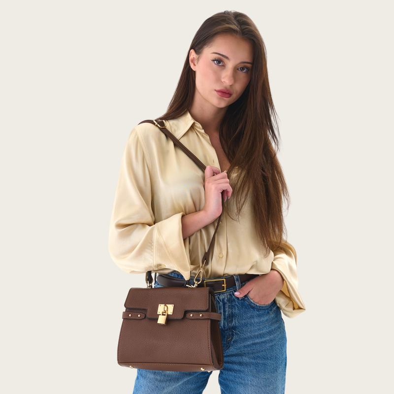 • Chic Lock Detail – Gold-tone hardware with a decorative front lock adds a polished, high-end look while securing the flap closure.